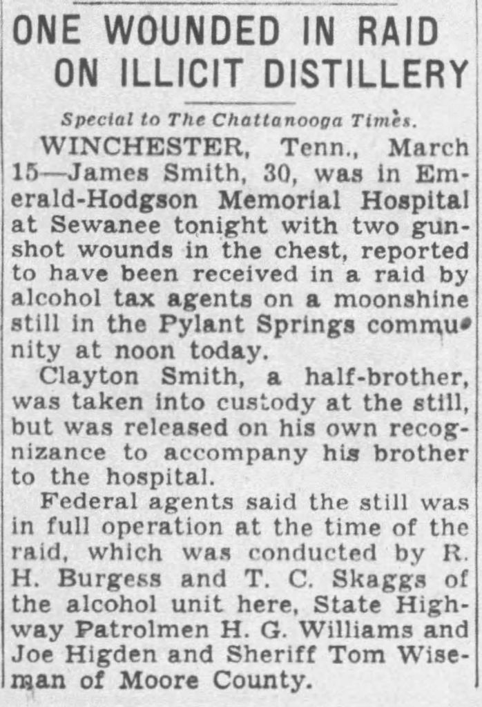 The demand for moonshine skyrocketed during the Prohibition period following the 18th amendment passed in 1919. Moonshine requires fresh spring water, and with the resort no longer on the property, Pylant Springs with its plentiful green water was an appealing site for moonshiners. It’s unknown how much moonshine was manufactured there, but in 1948, a man was shot during a raid on an illicit distillery in Pylant Springs.