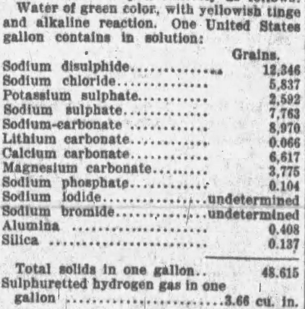 Health claims for Pylant Spring focused on the “green water” found there. An 1897 article in The Nashville Banner claimed the water never failed to cure “that dread disease, gallstone.” The water was bottled and sold nationwide, but the advertisements assured people the best cure was only to be found in person at the resort. The source of the sulphur was the Black Devonian Shale abundant in the waters.